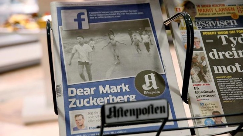 In protest, the Norwegian newspaper Aftenposten printed the image on its front page and posted it on Facebook, which removed it. That prompted the prime minister to post the photo - only to have Facebook remove it again.