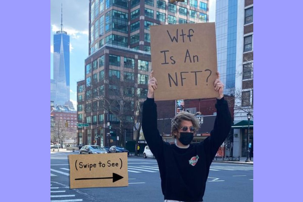 Seth decided that he would stand with a placard that read: "WTF is an NFT?" and convert it into an NFT