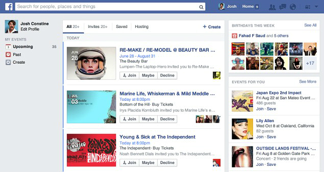 Facebook's re-crafted Events page now features a tabbed interface that lets users jump quickly through the their events, categorised under All, Invites, Saved and Hosting sections instead of compiling everything under one widget. It features Birthdays This Week on the right, with the new Events For You widget below that. On clicking See More, users will be taken to a dedicated Events for You page with more suggestions.