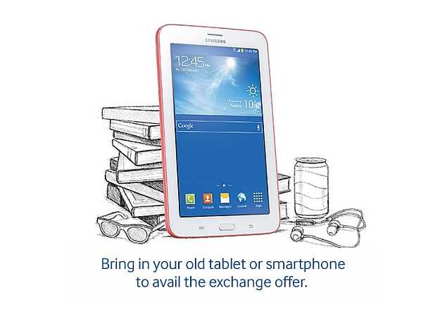 Samsung Galaxy Tab3 Neo, which has a best buying price of Rs. 14,990, will be available for an exchange price of Rs. 12,490 (Rs. 2,500 credit on exchange) followed by the 18 months EMI for Rs. 725 each. Similarly, Samsung Galaxy Tab3 (7) with a best buying price of Rs. 17,490, will be available for Rs. 14,490 with the buy-back offer (Rs. 3,000 credit) that translates to Rs. 841 per month as per EMI plan. Galaxy Tab3 (8) with its best-buy price of Rs. 25,990, will be available for Rs. 22,990 (Rs. 3,000 credit) under the buy-back offer, translating to Rs. 1,334 per month if customers choose to use the EMI offer (See Below).