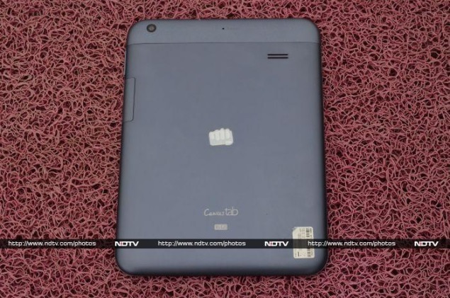 The tablet's rear also houses Micromax logo branding embossed in the centre with the model name - 'Canvas Tab' along with inbuilt storage capacity printed at the bottom, something we have seen on Apple's iPad models.