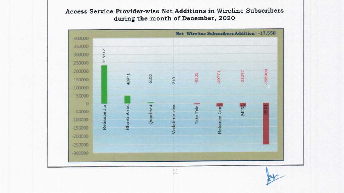 Bharat Sanchar Nigam Limited (BSNL) and Vodafone Idea (Vi) lost subscribers with the former loosing 252,501 and the latter loosing over 5.69 million. BSNL holds a 10.29 percent market share while Vi holds a 24.64 percent market share as of December 31 2020. In the previous month, Airtel added 4.3 million, Jio added 1.9 million, BSNL lost around 18,360 while Vi lost 2.8 million.