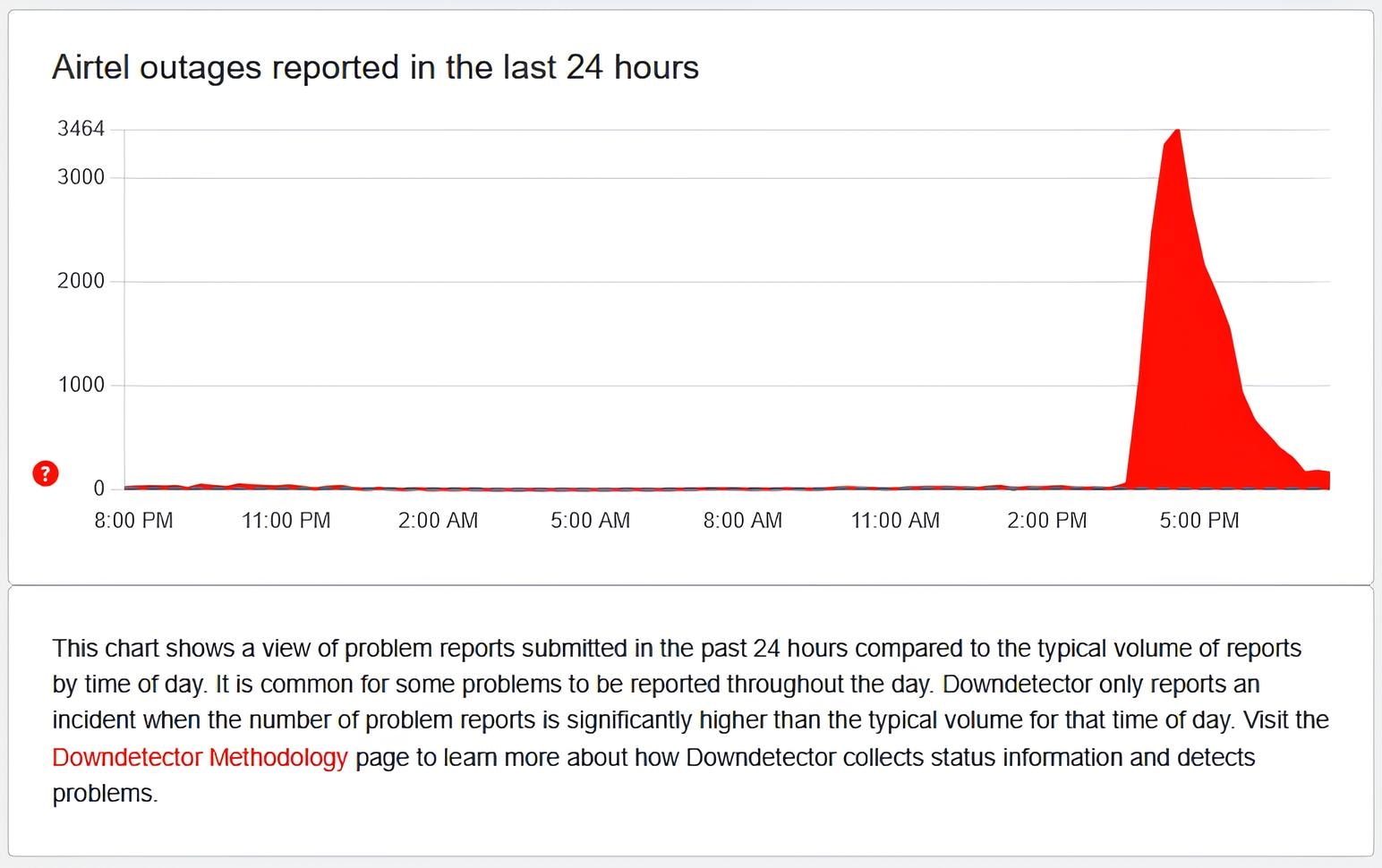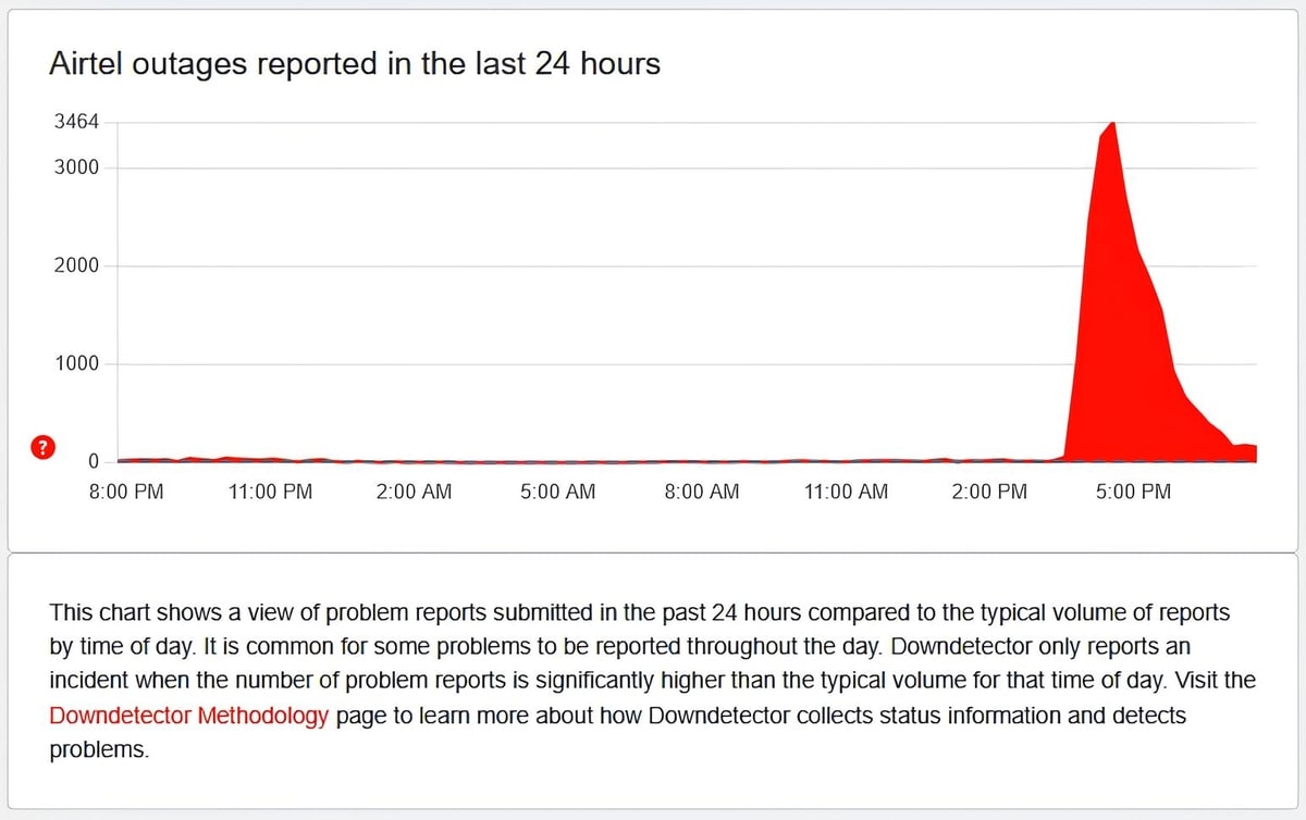 Over 3,200 Airtel users have reported issues on Downdetector over the past 30 minutes.