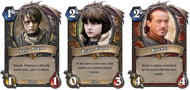 In Hearthstone, you play as a hero with 30 health points, and you draw cards of minions and spells, whom you can use to attack the enemy heroes and minions with, or defend yourself and your troops. And GameofStones has made a 31 card deck with the likes of Tyrion Lannister, Khal Drogo, Jon Snow, Ghost, Varys, Olenna Tyrell and other characters from the cast.