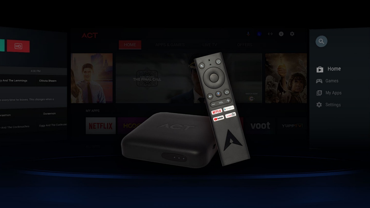 The ACT Stream TV 4K is an Android TV-powered media streaming device. The users can download apps like Netflix, Hooq, Zee5, Sony LIV, and more from Google Play Store to stream content. They can also play stored media using a media player. The device also offers access to over 100 TV channels with support for Catch Up TV.