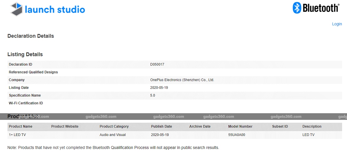 The upcoming OnePlus TV model has been listed on Bluetooth SIG with model number 55UA0A00 and it is said to come with support for Bluetooth v5. The model number suggests that the TV may have a 55-inch panel. Similarly, the OnePlus remote control has a model number RC-003A and it is listed with Bluetooth v4.2. The listings give out no other details of the remote or the next-gen OnePlus TV. Both the listings were spotted first by 9to5Google. While the Bluetooth certification is no indication that the launch is near, it does suggest that OnePlus is working on a new OnePlus TV model. Also, it is weird to see the remote support only Bluetooth 4.2 when the leaked TV itself can support Bluetooth 5.0.