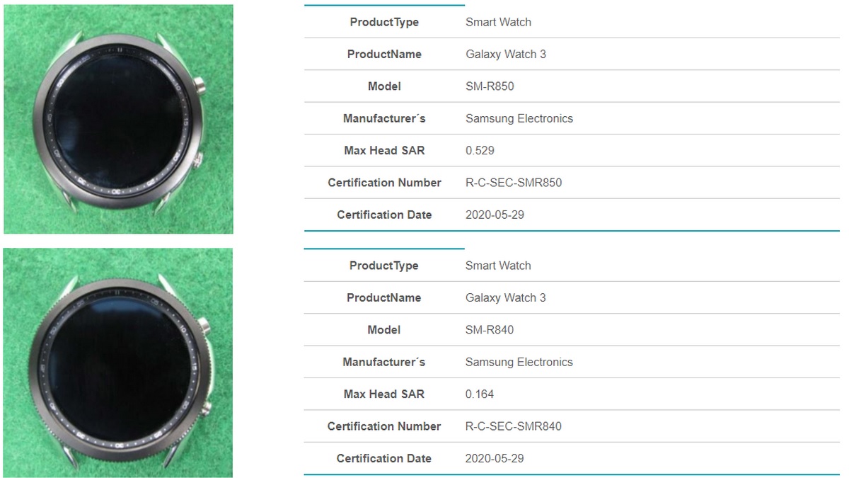 As seen on the NRRA website that lists the SAR values of devices, there are allegedly two Galaxy Watch 3 models listed namely, SM-R850 and SM-R840 that, from previous leaks, we know correspond to the 41mm and 45mm variants of the smartwatch. Both seem to have a similar design with two buttons on the right side. There also seems to be a rotating dial on the Samsung Galaxy Watch 3. The smartwatch models in the images appear to be the stainless steel variants. The rim of the glass screen can be seen with the minutes numbering.