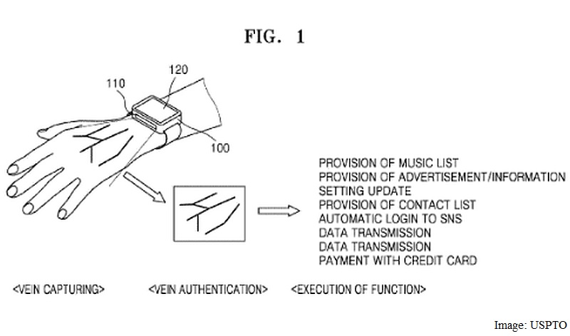 "A wearable device comprising: a sensor configured to capture a vein image of a user; and a processor configured to: in response to a function or an application being selected by the user, control the sensor to capture the vein image of the user wearing the wearable device; identify the user by comparing the captured vein image with at least one registered vein image; and in response to determining that the identified user has an execution authority for the selected function or application, execute the function or the application," says the patent, which was filed in July last year.